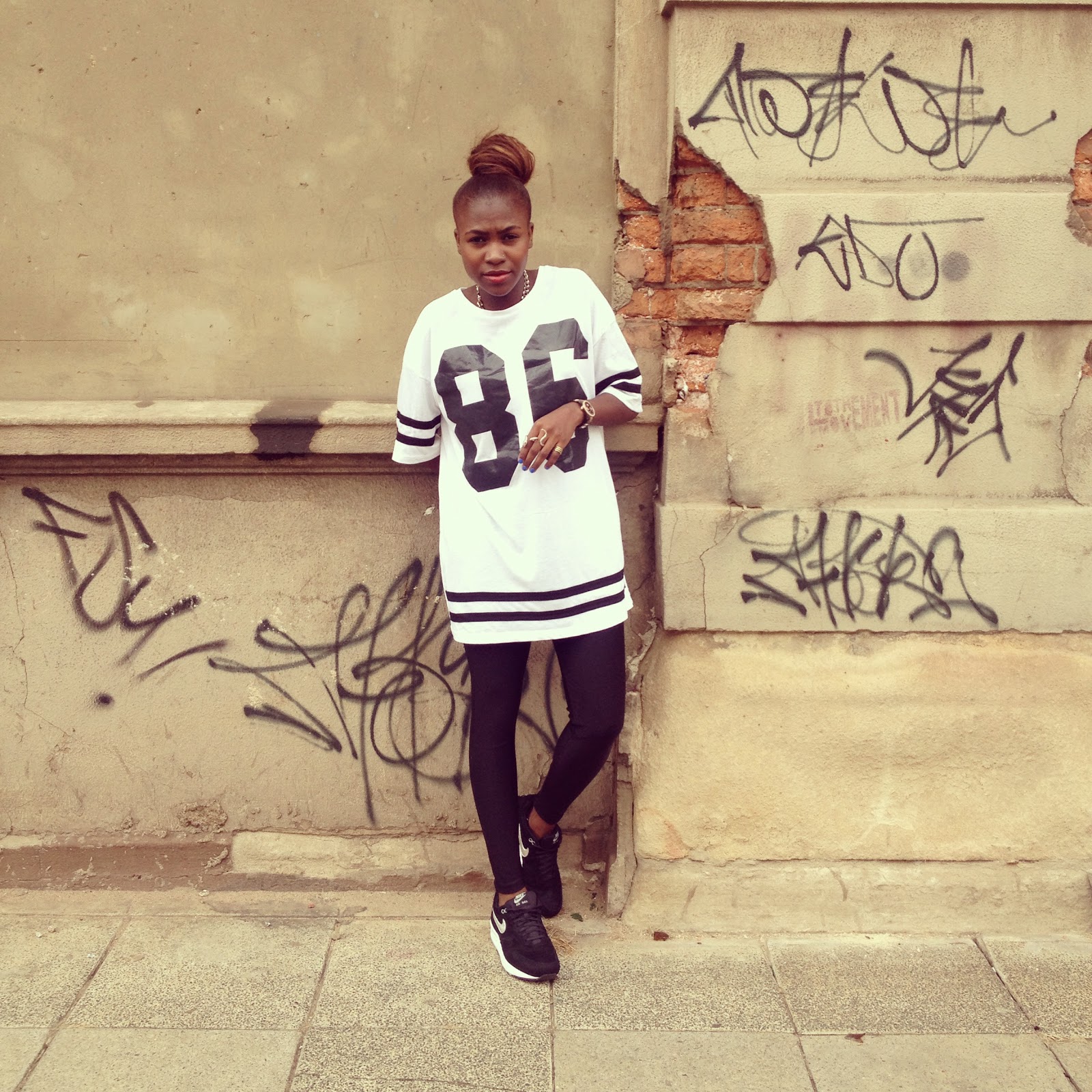 Top: TOPSHOP - Disco pants: THE LOT - Sneakers: Air Max